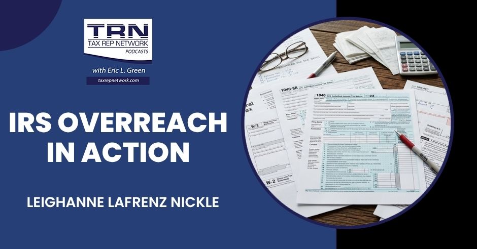 In this episode of the Tax Rep Network Podcast, Eric Green is joined by Leighanne Lafrenz Nickle, CPA, for a lively discussion on ERC claims, IRS due diligence audits, preparer penalties, and the growing problem of IRS overreach. Drawing from real cases and frontline experience, they break down what tax professionals need to know about refund deadlines, documentation, aggressive auditors, and why strong representation matters more than ever. If you handle tax controversy work, this episode is packed with practical insight you can use right now.