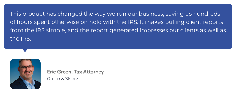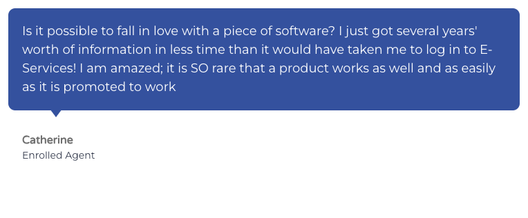 The original program that requests, downloads, and analyzes IRS Transcript Data to find opportunities and issues with your client’s taxes. The program interfaces with IRS e-Services.