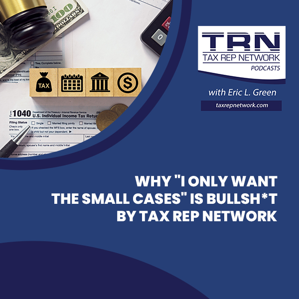 Why “I Only Want The Small Cases” Is Bullsh*t By Tax Rep Network Gallery Why “I Only Want The Small Cases” Is Bullsh*t By Tax Rep Network TRN Podcast Why “I Only Want The Small Cases” Is Bullsh*t By Tax Rep Network By eric green|2025-04-17T16:14:34-04:00March 23, 2023|TRN Podcast|0 Comments Read More